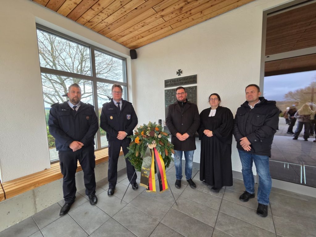 Die feierliche Stunde wurde eingerahmt von einem Gottesdienst und musikalisch begleitet durch den Bläserchor aus Höchstenbach, der mit seinen einfühlsamen Klängen für einen würdevollen Rahmen sorgte. Im Anschluss erfolgte die Kranzniederlegung zum stillen Gedenken.
